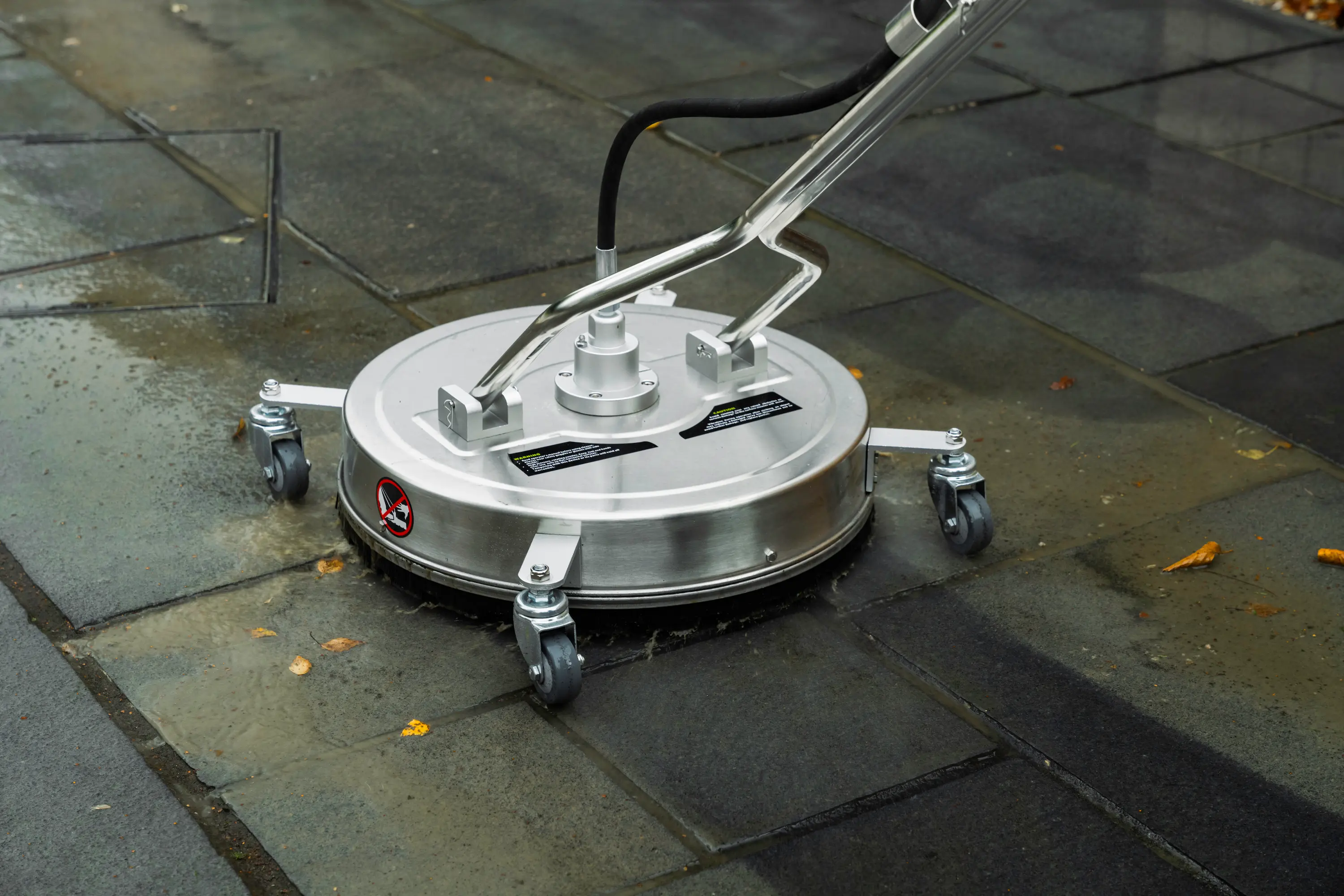 Pressure Washing: Using a flat service cleaner, we pressure wash the surface thoroughly, followed by a pressure rinse.